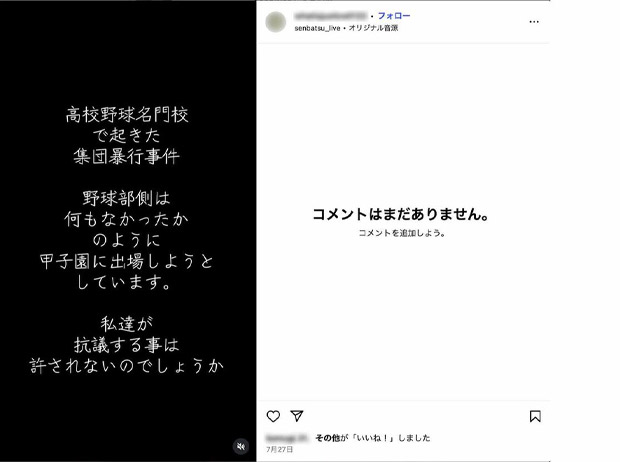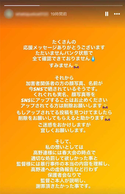 同日深夜、元広陵野球部員の父親がFacebookで実名告発した。(2024年度に起きた広陵高校硬式野球部員暴行傷害事件(3))