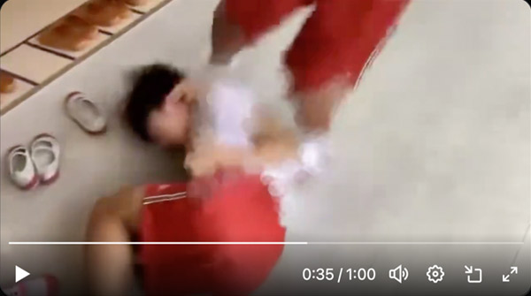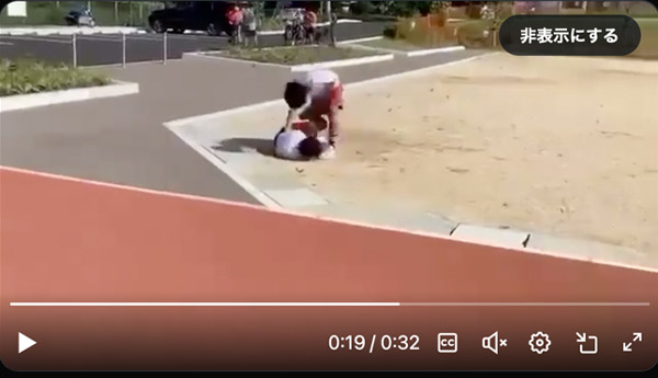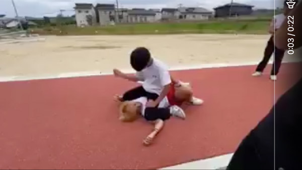 2件目の動画には映像の最後辺りに黒い服上下の教師と思われる大人が止めに入っている様子が映っている。