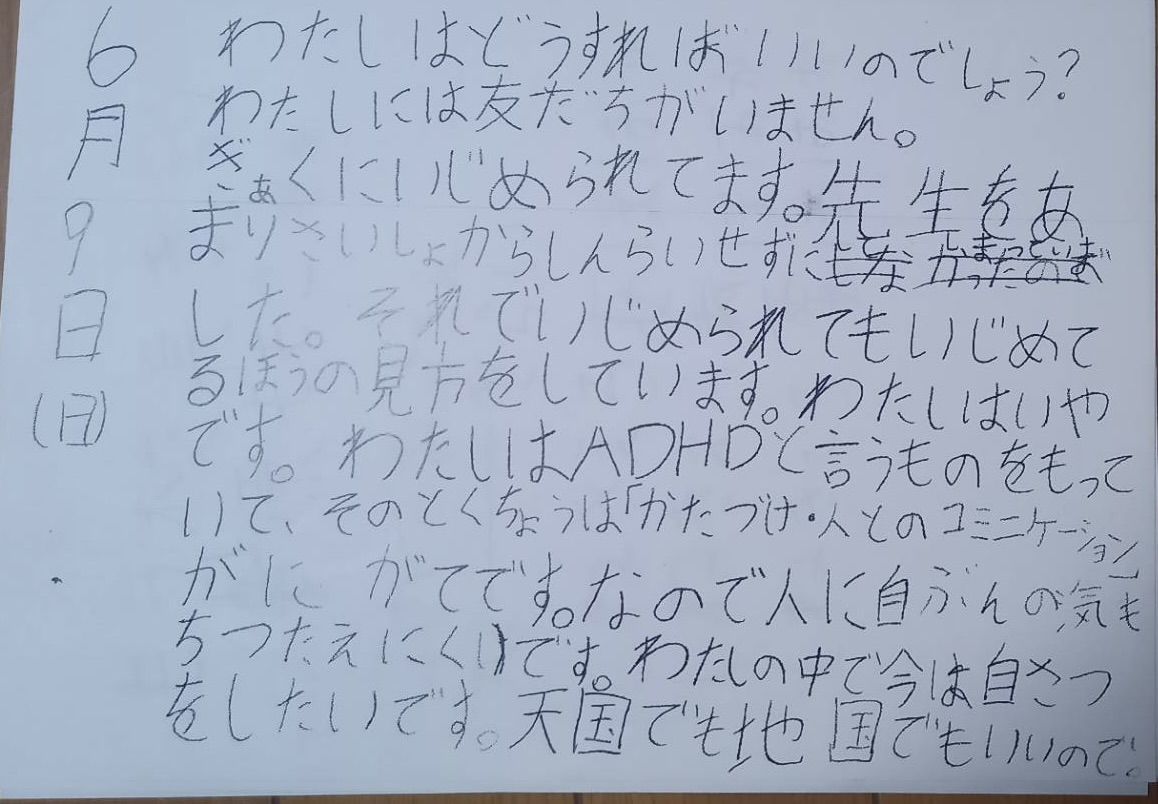 「今は自さつしたいです」と書かれた女子児童の手紙
