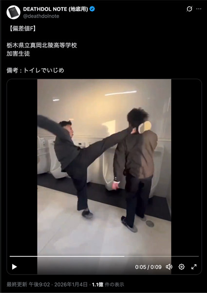 2025年(令和7年)12月19日午後、栃木県立真岡北陵高等学校に通う男子生徒(高校1年生)は、清掃の後、校内の男子トイレで同級生の男子生徒から無抵抗の状態で顔面を2度拳で殴られ、後頭部を足蹴りされるなどの暴力行為を受けた。暴行の様子は動画で撮影され、2026年1月4日にSNS上に投稿されて拡散され、翌5日までに表示回数は9900万回を超え、19万以上の「いいね」を集めた。